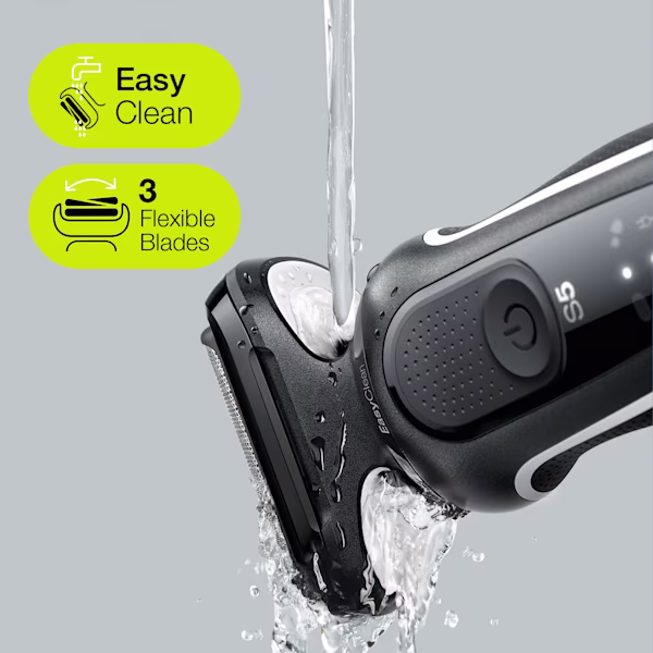 Close shaving made easy: this electric razor’s 3 flexible blades adapt fluidly to your facial contours, while the EasyClean system enables quick and simple cleaning—without needing to remove the shaver head.